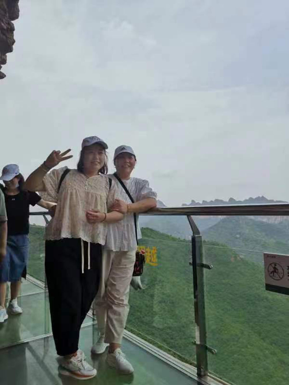 到達(dá)景區(qū)后,大家乘坐景區(qū)內(nèi)小火車來到趙匡胤千里送京娘的青銅雕像前合影留念。撫摸著青銅雕像,品味著這個凄美的愛情故事,感慨萬千。隨后,大家乘上游船,欣賞京娘湖碧波蕩漾的旖旎風(fēng)光,感受著一線天峰林絕壁的壯美風(fēng)景。到達(dá)碼頭后,大家拾級而上開始登山。隊伍分為前鋒、后營、中軍,團(tuán)隊前后呼應(yīng),協(xié)調(diào)行動。上山的路雖然很陡峭曲折,有的路段甚至沒有臺階,但大家相互鼓勵,相互加油,堅持著向上攀登,向上攀登。中午,在山里人家簡單用餐后小憩一會兒,午后繼續(xù)向山頂發(fā)起沖鋒。每當(dāng)大家疲憊至極時,就停下來休息一下,吹著清爽怡人的山風(fēng),回眸走過的山路,又是一番別樣的風(fēng)景,一身的疲憊和勞累一掃而光。短暫休息后,大家繼續(xù)向上攀登,有的員工走不動了,落在了后面,大家就扶一把,拉一把,幫助他們跟上隊伍。在大家的共同努力下,終于成功登上了宋祖峰的頂峰,整個團(tuán)隊沒有一個人掉隊。特別是車間女工表現(xiàn)的非常頑強(qiáng),體現(xiàn)了不怕苦不怕累、積極向上的精神風(fēng)貌。團(tuán)隊的一些老員工,還有員工家屬,不管是老人還是孩子,都表現(xiàn)的很好,堅持到了最后,站上了峰頂。